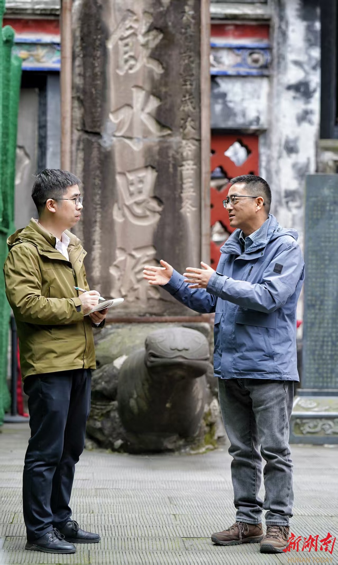 付三云(右)接受湖南日报全媒体记者刘勇采访。