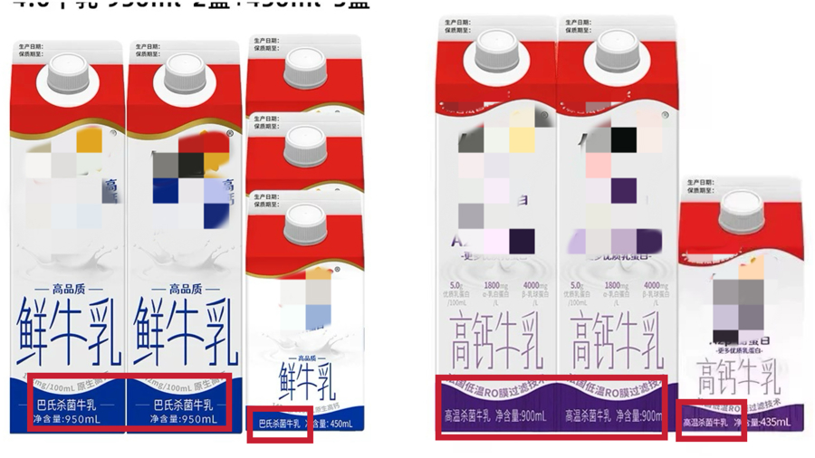 某乳制品品牌电商店铺中巴氏杀菌乳与高温杀菌乳的样照,两者均冷链配送。(网页截屏)