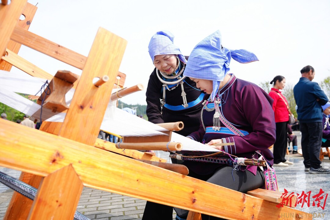 二十余台织机排开,飞梭穿梭。直播镜头对准织娘的手,下单提示音叮叮当当,深山好物飞向全国。“一村一品”展区人头攒动——地马油茶、金殿侗帕、通坪埋头鲤、文坡甜藤粑粑,摆了一长溜。