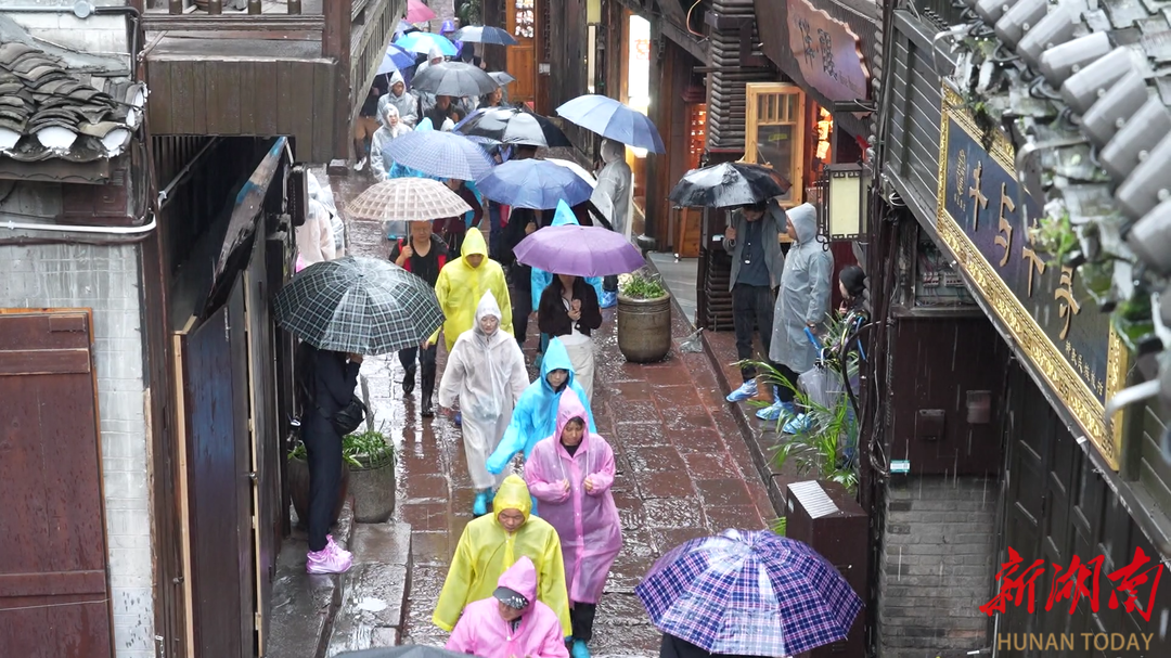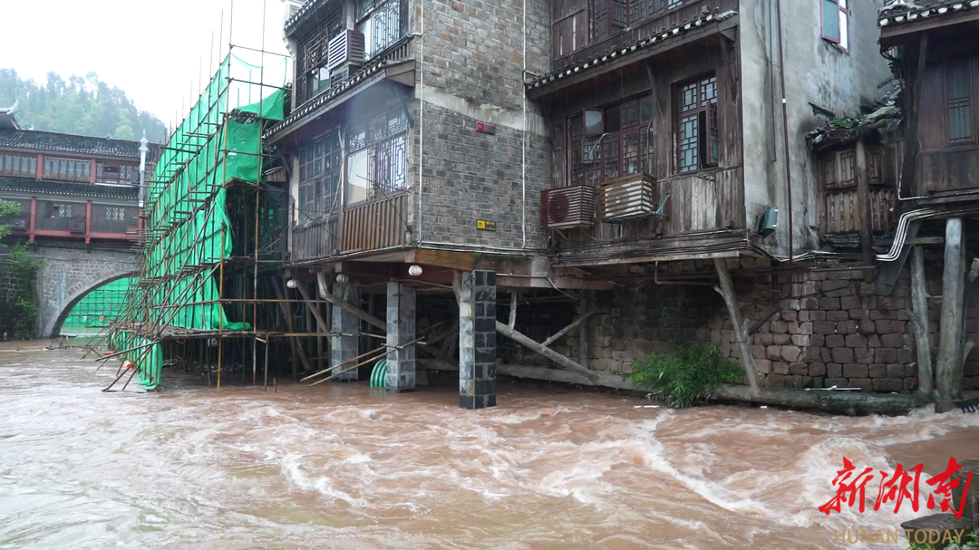 响应启动后,凤凰县立即进入防汛应急状态。针对核心景区凤凰古城,该县相关部门在古城沿江步道、低洼街巷、老旧建筑等危险区域全线拉设警戒带,设置醒目的警示标识。对沱江核心河段、重点支流及易漫溢区域实施临时封闭,暂停所有水上游览等项目,疏散沿岸滞留人员,并组织公安、应急、文旅及社区工作人员,对跳岩、虹桥、万名塔等游客密集点位实行24小时巡查值守,引导游客安全避险、有序疏散。