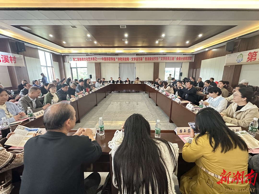 湖南日报·新湖南客户端4月21日讯(记者 李梅花 通讯员 朱虹颖 赵颖艳)4月21日,第二届娄底文化艺术季之中国诗歌学会“诗歌阅读周·文学浸万家”暨湖南省作协“文学照亮三湘”娄底分会场活动在娄星区杉山镇花溪村举行。中国诗歌学会会长王山、湖南省作协名誉主席王跃文等文学名家,与本土作家、文学爱好者及农民代表共聚一堂,开启一场别开生面的文学对话。