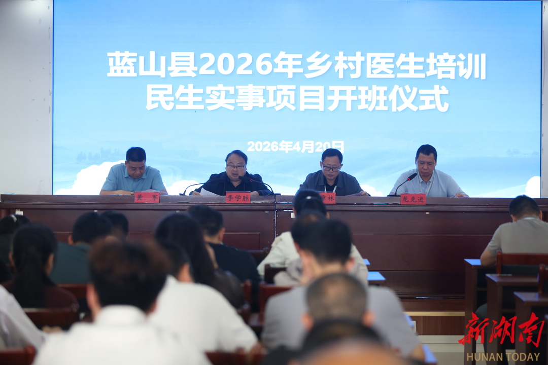 湖南日报·新湖南客户端4月21日讯(通讯员 谢丽芳 黄慧琴)4月20日,蓝山县2026年乡村医生培训项目在县医共体总院正式开班,全面落实省重点民生实事,强化基层医疗卫生人才队伍建设。县卫生健康局党组书记李学胜、县医共体总院党委书记成章林出席并作动员讲话,全县40名在岗乡村医生参训,标志着蓝山基层卫生“强基工程”迈入实战赋能新阶段。
