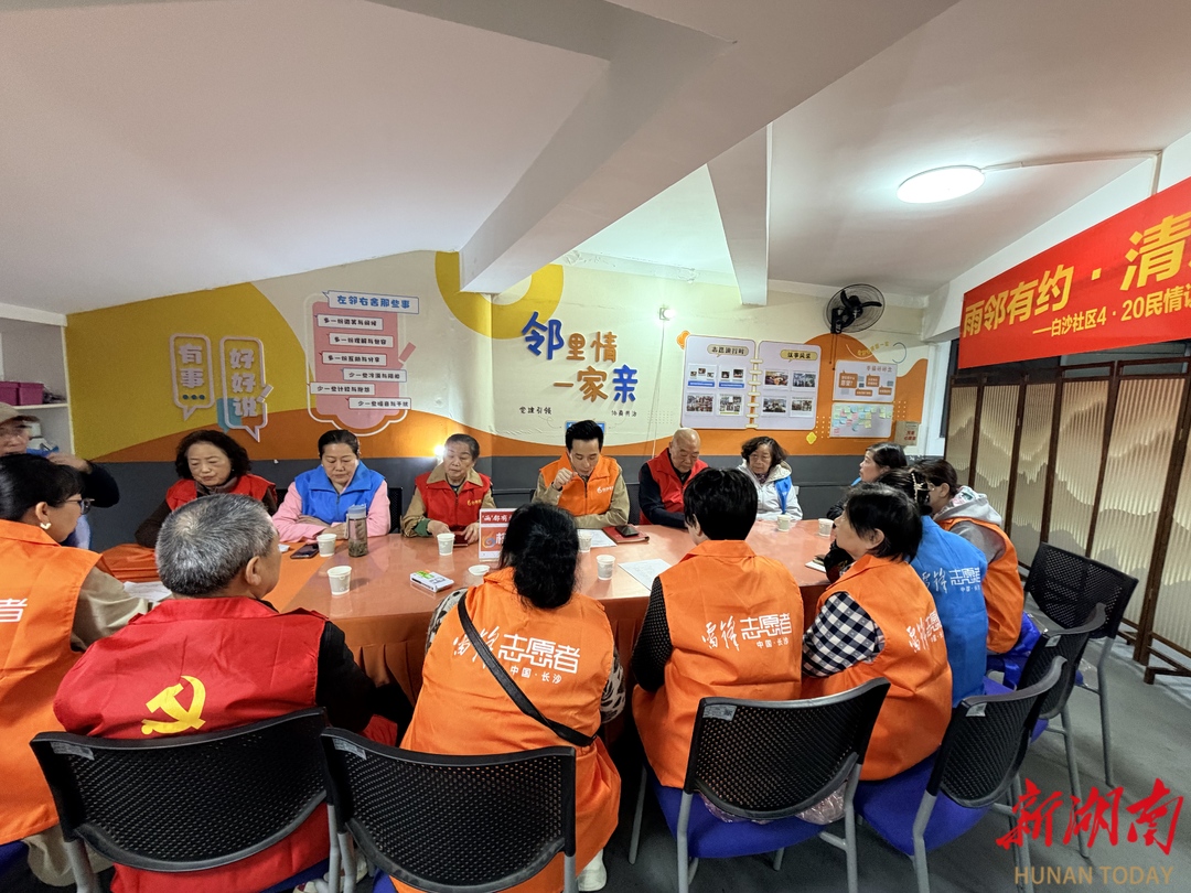 “4台电梯1个半月换完了,效率高!以前坐电梯像坐过山车,现在稳当得很。”4月20日上午,雨花区砂子塘街道白沙社区邻里中心一楼协商区,一位楼栋长话音刚落,周围不少人点头附和。当天,白沙社区首次将党委扩大会与“雨邻有约·请您来说”民情收集机制深度融合,19位社区“两委”成员、楼栋长、邻长和“最美白沙人”围坐一堂,没有主席台,没有发言稿,只有面对面的话匣子。