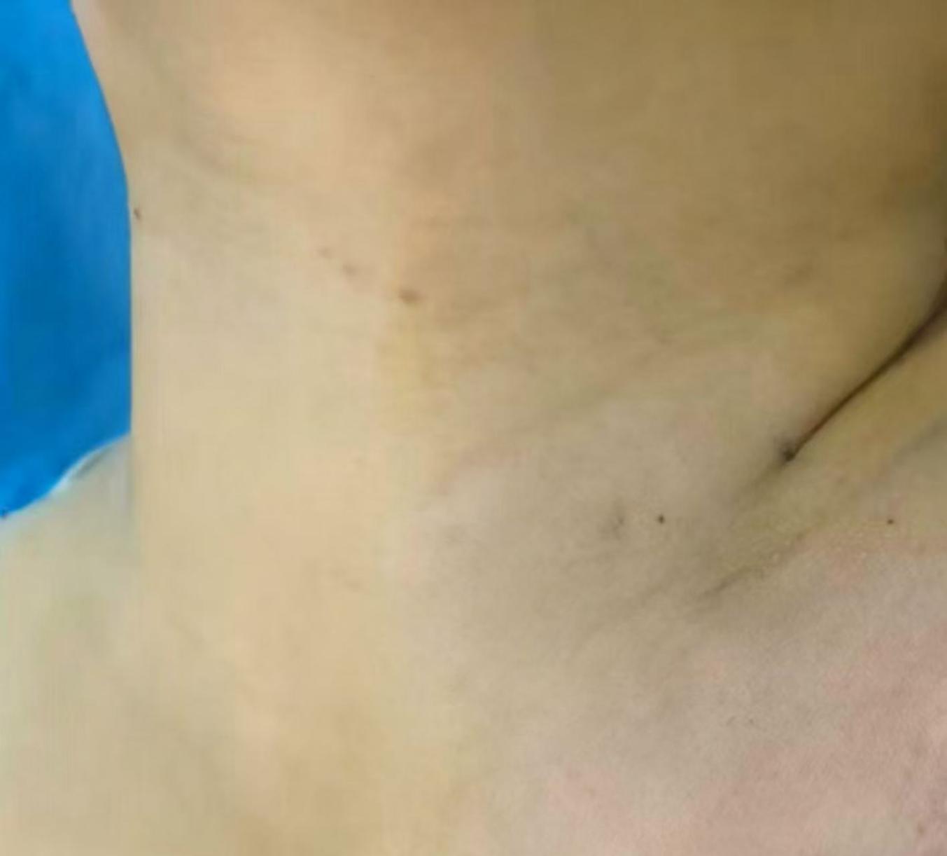 手术当天,在团队的默契配合下,整个过程历时约120分钟,术中出血少,操作精准,肿瘤被完整切除。同时,完好保护了喉返神经及甲状旁腺功能。更重要的是,手术切口巧妙地隐藏在身体隐蔽部位,术后陈女士颈部皮肤光洁如初,完全看不出手术痕迹。“真的没想到,做完甲状腺癌手术,脖子上一点疤痕都没有!”陈女士在术后康复期间反复端详自己的颈部,难掩激动与欣喜。她的丈夫也连连称赞:“衡阳市第一人民医院的技术真是一流,不仅治好了病,还保住了美观,我们全家人都非常感激。”