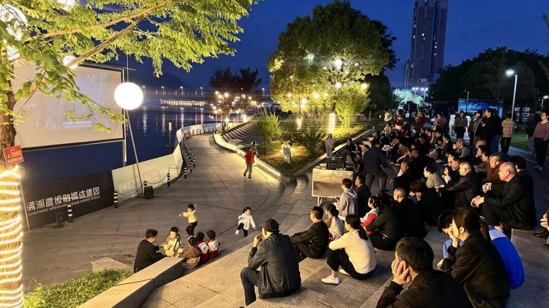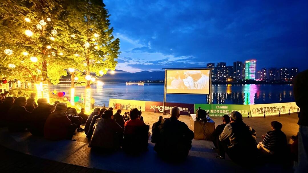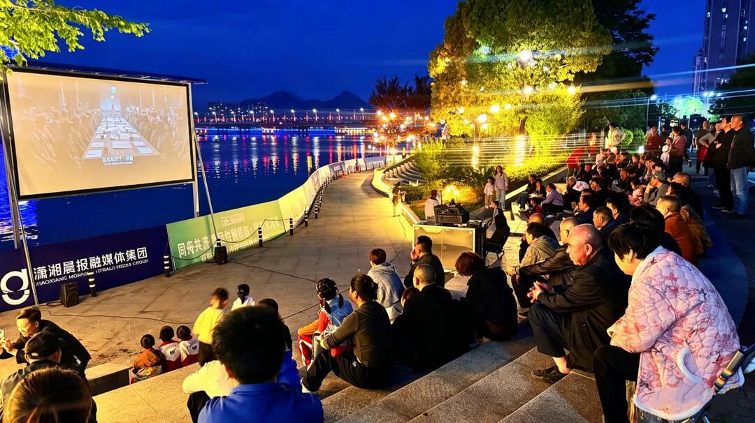 “龙超”期间,公园内人流如织,白天的龙舟赛事点燃了全城热情,夜幕降临后,公益电影放映点便成了新的“人气聚集地”。放映现场,不仅有精心挑选的红色主旋律影片、经典老电影,也有贴合群众需求的科教片、防家庭安全用电与居家养生保健的宣传片,兼顾不同年龄层观众的喜好。放映员提前调试设备,用专业的服务保障观影体验。在家门口的公园看露天电影,让不少的年老群众仿佛找回了童年的记忆,也让远道而来的游客,在光影中感受慈利的城市温度,是最接地气的文化福利。