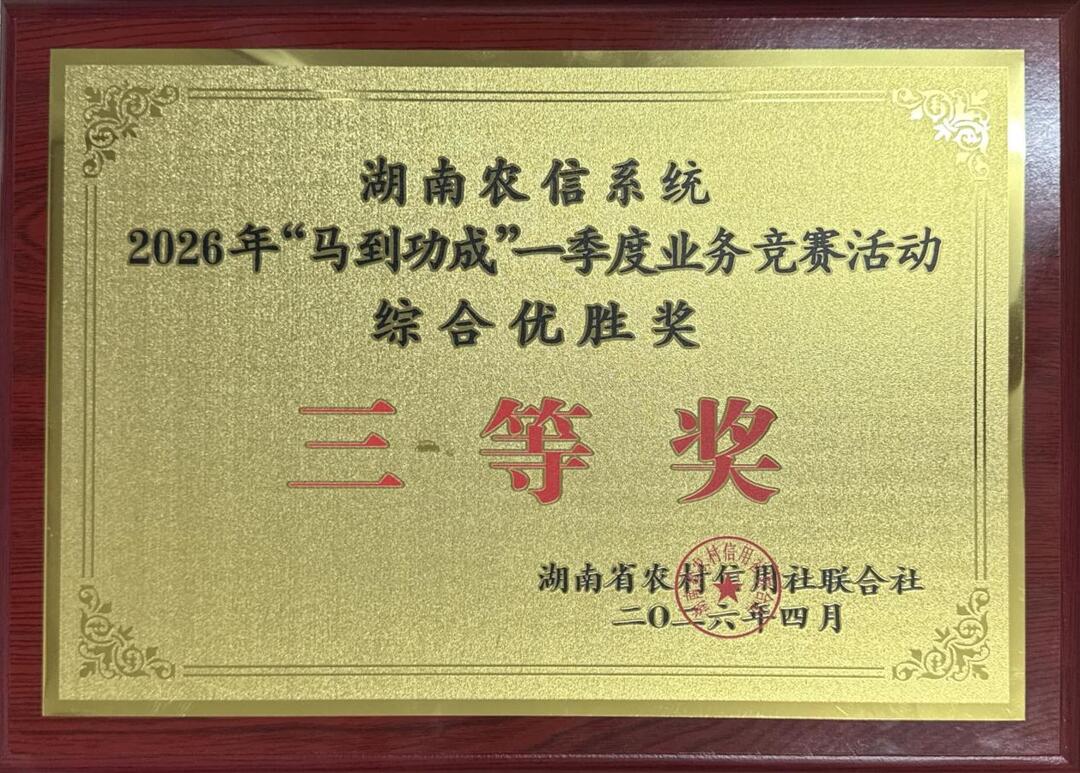 4月20日上午,从全省农信系统2026年一季度经营形势分析会上传来喜讯,衡山农商银行在一季度开门红竞赛活动中脱颖而出,荣获湖南农信系统2026年“马到功成”一季度业务竞赛活动综合优胜奖。