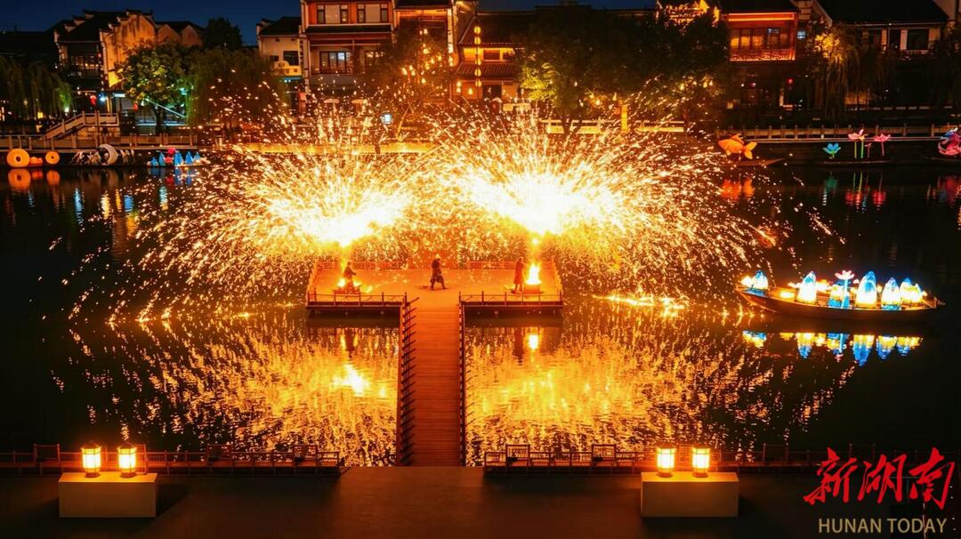 靖港古镇地处芦江之滨,自古便是商贾云集的繁华埠头。今年“五一”期间,靖港古镇国潮花火节最大亮点,便是依托独特的水岸格局,超多火热表演呈现震撼吸睛、前所未有的“花火奇观”。
