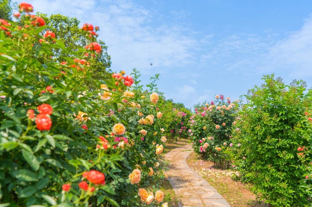 这里是花的海洋,更是爱的殿堂。300亩辽阔花田,上千个玫瑰品种,上万株玫瑰竞相绽放——从经典的正红,到梦幻的浅紫;从优雅的香槟色,到活泼的糖果色……娇艳的茶香玫瑰、可爱的迷你玫瑰、层层叠叠的古典玫瑰……每一朵,都在阳光下绽放着独一无二的光芒。