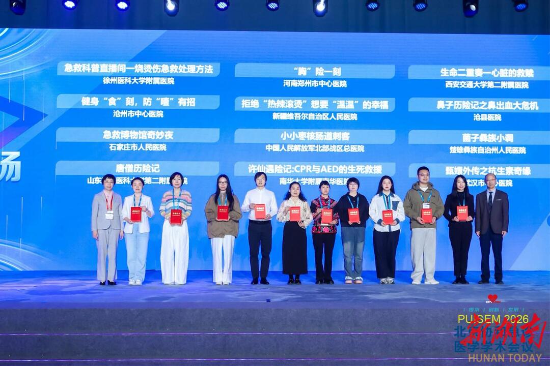 湖南日报·新湖南客户端4月21日讯(通讯员 唐维诗)近日,在2026北京协和急诊医学学术会议(PUISEM 2026)“急救科普守护健康”急诊急救科普系列活动优秀作品展演中,南华大学附属南华医院急诊科团队创作的科普作品《许仙遇险记:CPR与AED的生死救援》,凭借科学严谨的内容、新颖生动的呈现形式,从全国众多参赛作品中脱颖而出,获三等奖,充分展现了医院急诊团队的专业实力与科普创新能力。