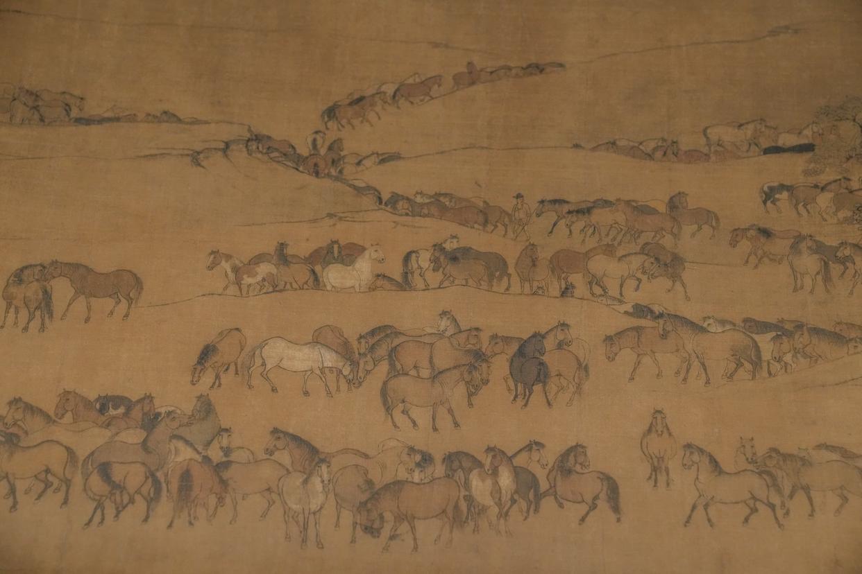 “神骏:故宫书画艺术中的马世界”展览展出的唐人(传)《百马图》局部。