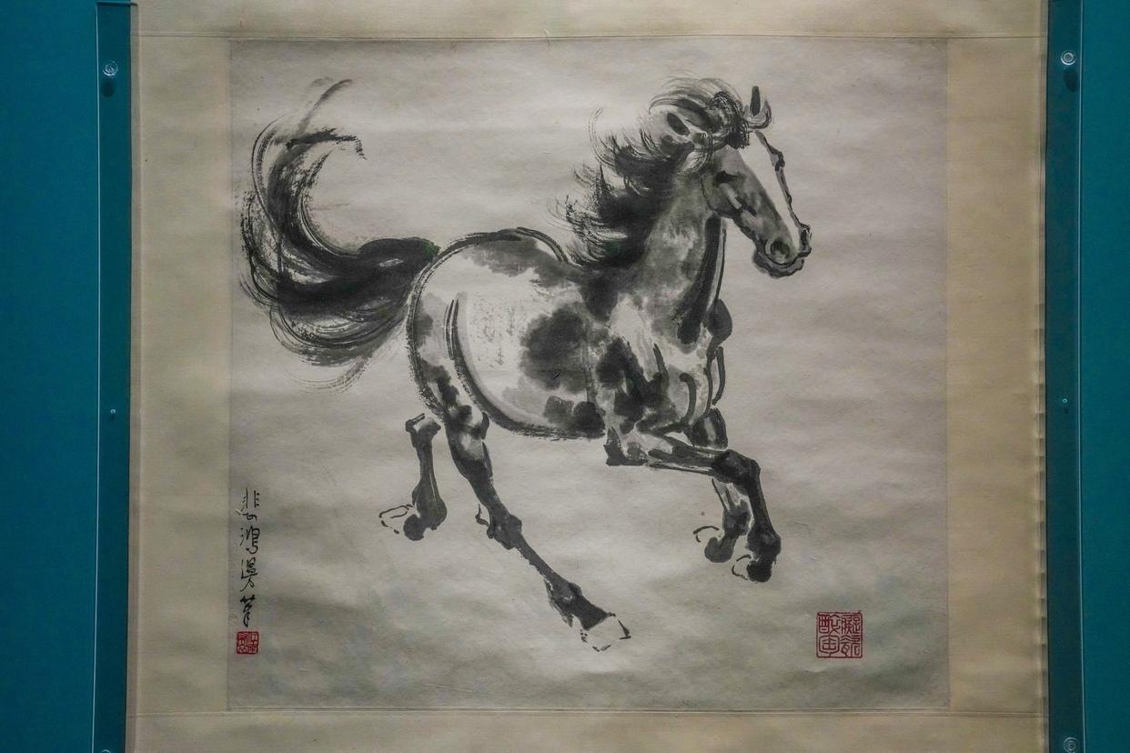 展厅里还处处体现着“马”的精神世界。故宫博物院院长王旭东说,行稳致远,是马的精神内核所在。此次特展分“行游”“牧放”“武功”“神骏”四个单元,希望弘扬挺拔骏立、昂首向上的时代精神,引导观众欣赏古代佳作,探寻不同时代的社会历史和人文精神,体悟中华文化博大厚重的丰富内涵。