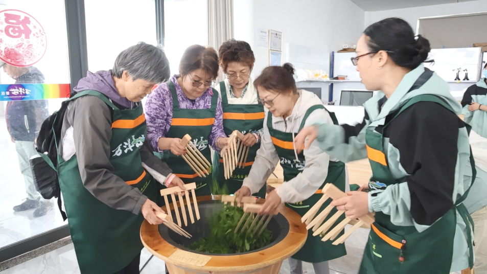 炒茶体验区里,袅袅茶香飘满整个庭院。工作人员守着古法铁锅,现场演示省级非遗——玲珑茶制作技艺,从杀青、揉捻到翻炒,每一个动作都娴熟利落。