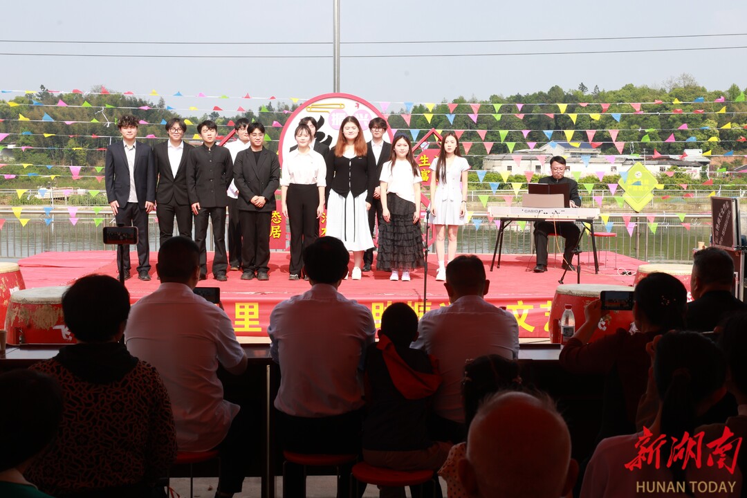 “不用出村就能看到大学教授和音乐学院高材生的表演,这场活动真不错!”4月18日傍晚,汨罗市新市街道八里村祝山屋场人头攒动,不少群众跟着音乐节奏打起拍子。当天,由湖南师范大学音乐学院与八里村联合举办的“乡音润八里·艺心助振兴”主题文艺演出在此拉开帷幕。