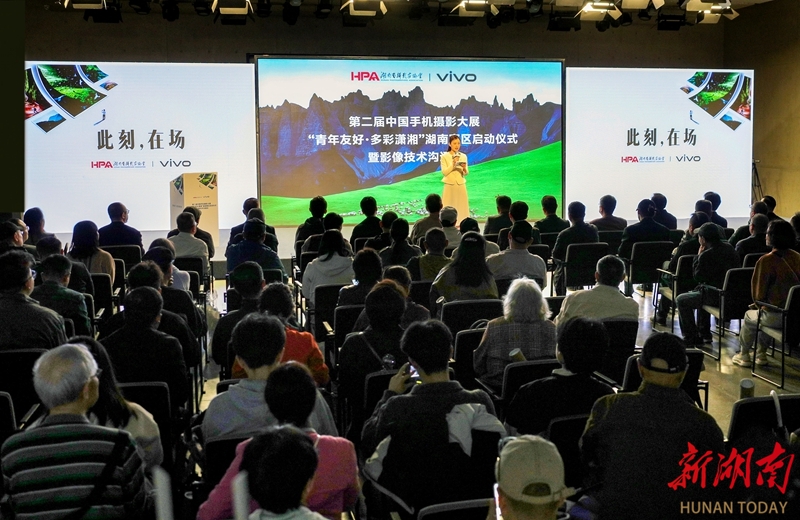 4月21日,由湖南省摄影家协会与vivo湖南联合主办的第二届中国手机摄影大展“青年友好·多彩潇湘”湖南赛区启动仪式在谢子龙影像艺术馆举行。大展通过科技与艺术的融合创新,为广大手机摄影爱好者搭建更广阔的展示平台,构建起“全国引领、湖南实践、大众参与”的移动影像发展新格局,推动新大众文艺在三湘大地蓬勃生长。图为启动仪式现场。湖南日报全媒体记者 郭立亮 摄