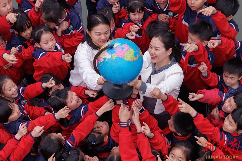 4月21日,嘉禾县城关中心学校,老师向学生讲解有关地球的知识。第57个世界地球日来临之际,该县多所学校开展“珍爱自然资源•守护美丽中国”主题教育活动,通过普及地球知识,引导学生从小树立珍爱地球、保护环境、节约资源的意识。黄春涛 黄莉 摄影报道(湖南图片库)