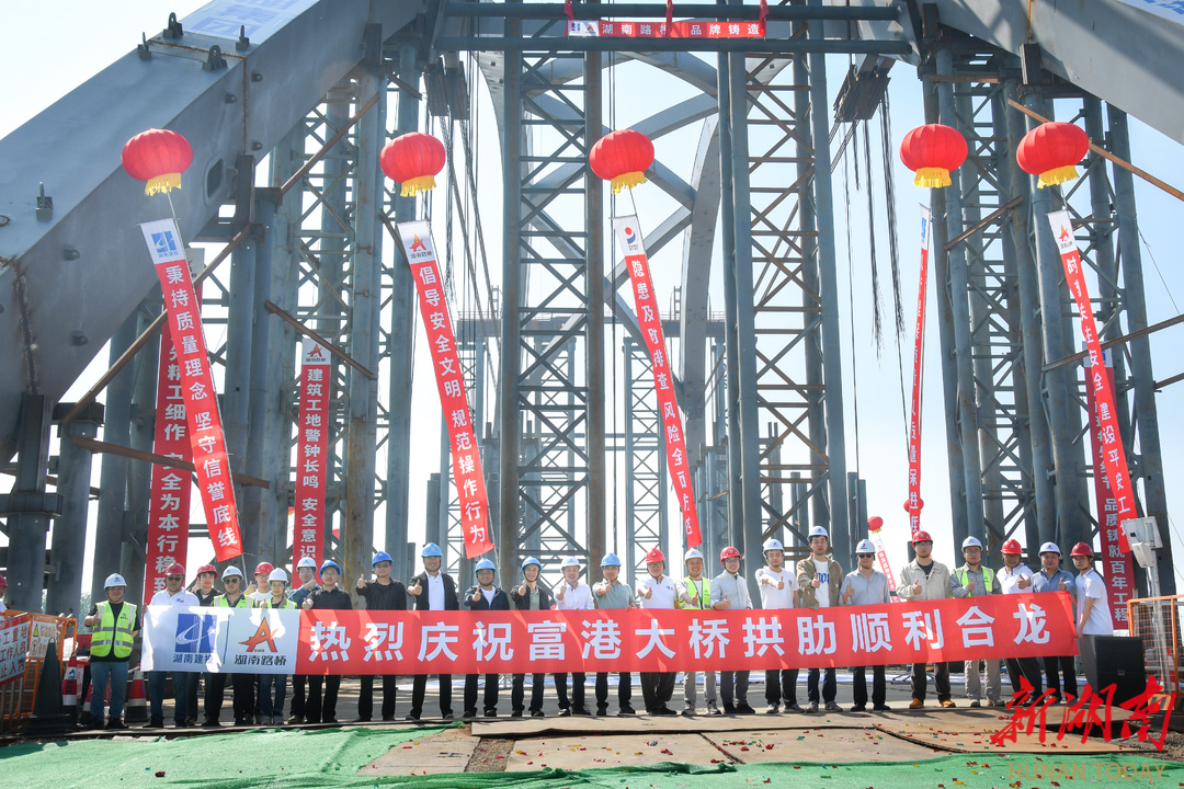 新湖南客户端4月22日讯(通讯员 林立军)4月20日,经过15个小时连续奋战,“双江之眼”——湖南路桥承建的浙江义乌富港大桥项目主拱肋顺利实现一次性高精度合龙,合龙误差控制在3毫米以内。此次合龙,成功验证了大跨度钢拱桥竖向提升工艺的可行性,积累的多工况提升控制、温度自适应配切等核心技术,为同类桥梁建设提供了宝贵样本。
