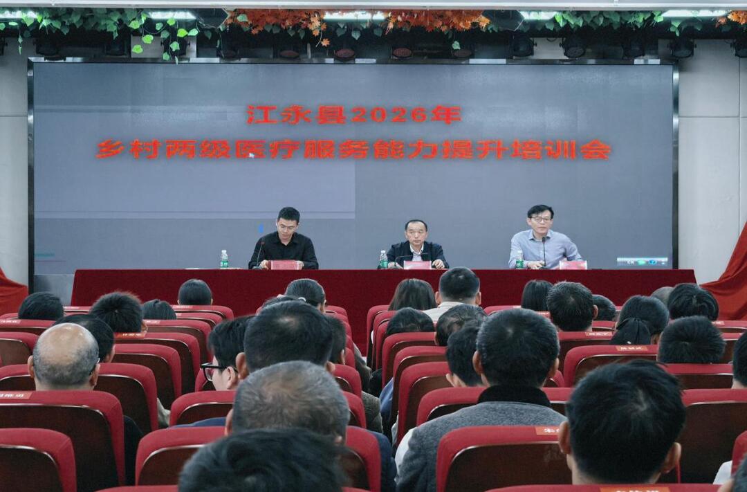 大众卫生报·新湖南客户端4月22日讯(通讯员 李月 谢江秀 李钟胜)4月21日,江永县举办2026年乡村两级医疗服务能力提升培训班,旨在全面提升乡村医生业务能力与综合素质,强化基层医疗卫生服务网底建设,规范基本公共卫生服务项目实施,提升慢性病精细化管理水平。各乡镇卫生院院长及分管医疗、公卫工作的副院长,全体在岗乡村医生参与培训。