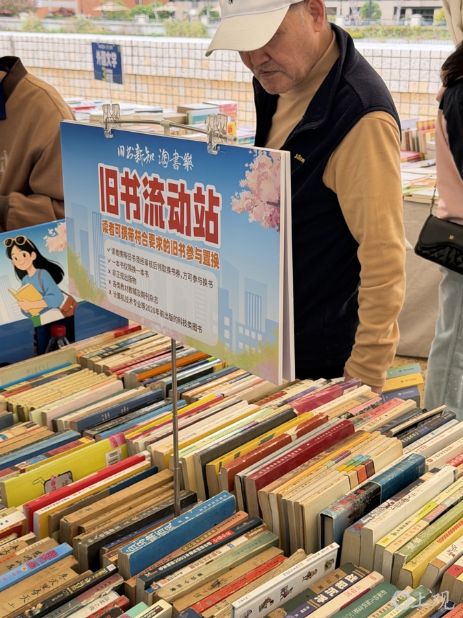 “很多外国游客特别喜欢旧书市集的氛围,他们觉得这是上海的文化特色。”上海图书公司总经理石洪颖翻出手机里的照片,“前一天傍晚我们还在布展,就有好几个外国朋友很感兴趣。在‘报刊亭’打卡装置前,这对外国夫妇拍了好几张照片。”今年,“旧书新知·淘书乐”旧书市集和大隐书局·虹书舫构成了市民游客步行可达的一条书香“citywalk”路线,石洪颖和书店同事们已经去对面的新空间“取过经”,“不是竞赛,是互补,满足市民游客差异化的阅读休闲需求。旧书不是‘板起面孔’的,我们也想把市集做得更有趣。”