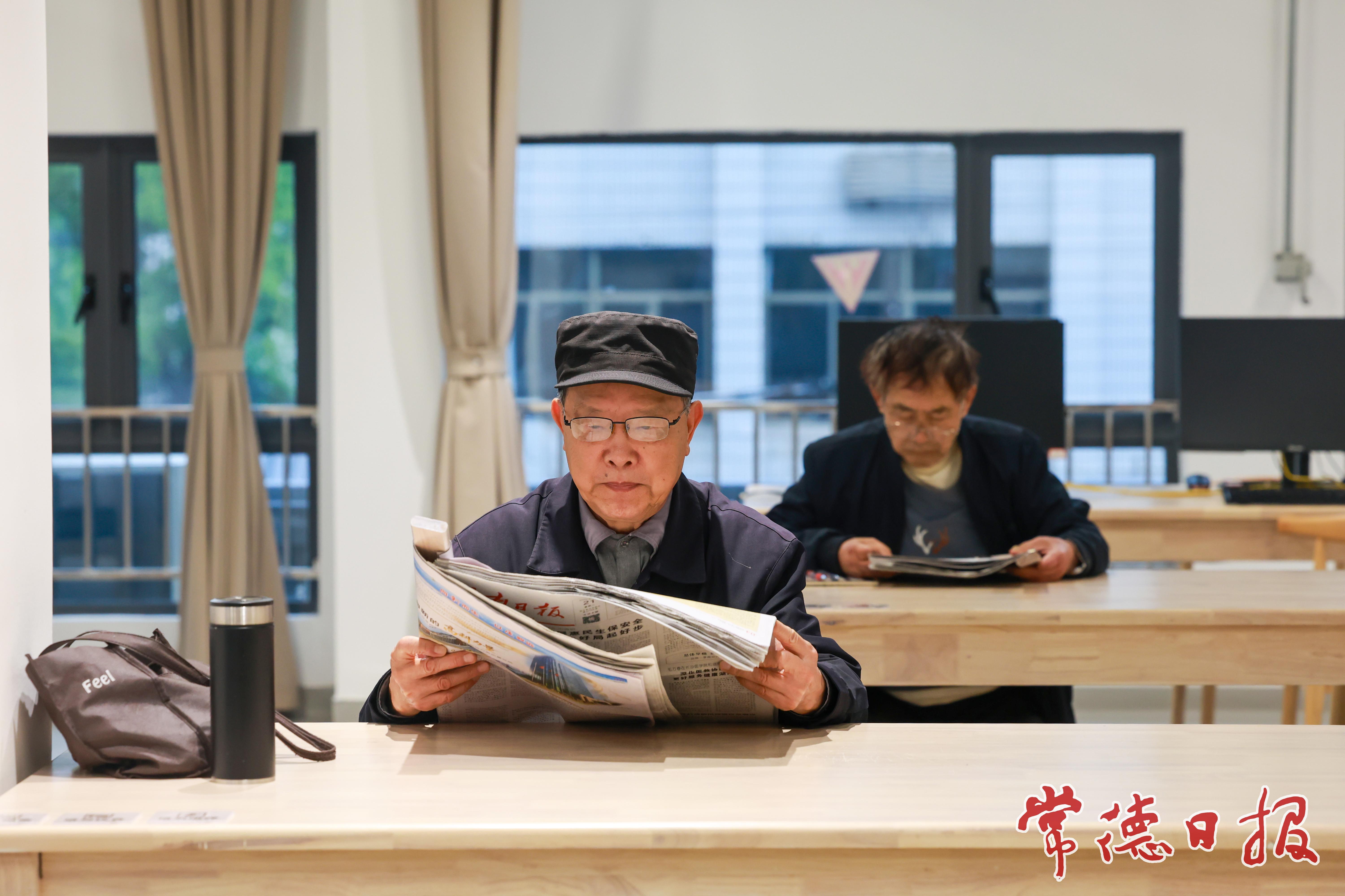 读书不问年纪,在市图书馆里,老人静读报刊,书香满室。
