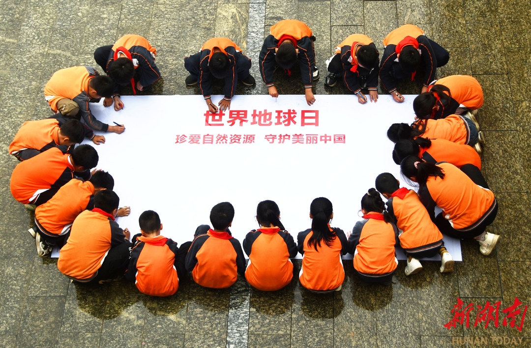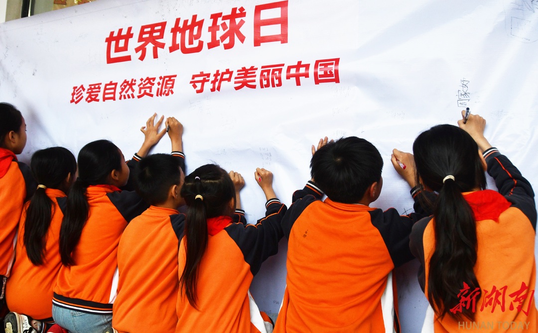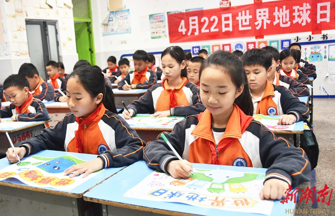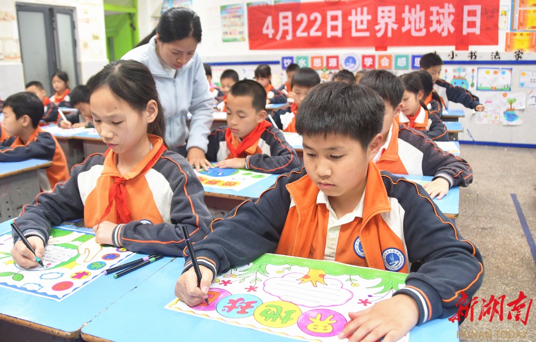 4月22日,江永县思源实验学校学生在展示“世界地球日”主题手抄报。当天是世界地球日,该校开展“珍爱地球 守护家园”主题活动,进一步增强学生珍爱地球、保护环境的意识。 田如瑞/摄
