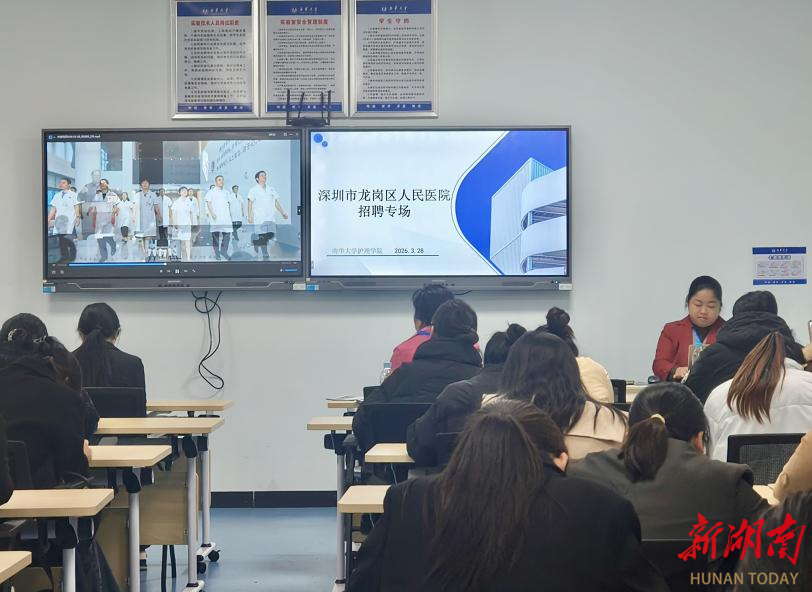 湖南日报·新湖南客户端4月22日讯(通讯员 肖喜凤 王心雨 陈佳慧 陶雯)为精准对接就业需求、助力学子求职,近日,深圳市龙岗区人民医院专场招聘会在南华大学护理学院火热开启,将优质就业岗位送到学生身边。