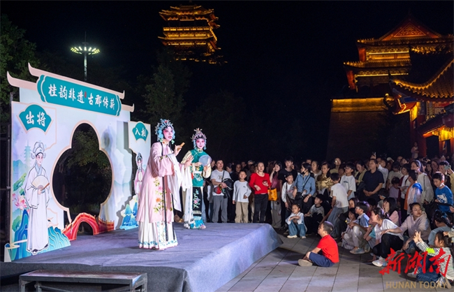 The 2026 Guiyang County Folk Culture Performance officially kicked off on April 19. The event included a "San Yue San (the third day of the third Chinese lunar month)" Song Festival, opera performances, dragon and lion dances, among other activities, allowing visitors to immerse themselves in the unique charm of folk culture. The photo shows people watching an opera performance on that day. (Photo/Ouyang Changhai)