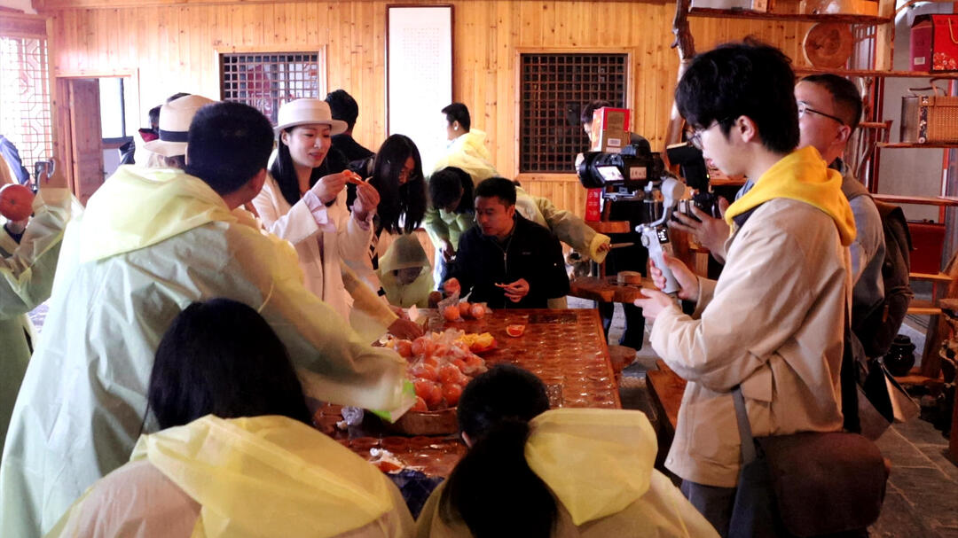 在脐橙种植基地观景平台,大家还开展了一场别有趣味的脐橙品鉴活动,对其色泽艳丽、汁多味甜的品质赞不绝口,同时利用自身平台优势,通过图文、短视频、直播等方式,多角度宣传推介新宁脐橙及崀山生态旅游,助力“新宁味道”走向更广阔的市场。