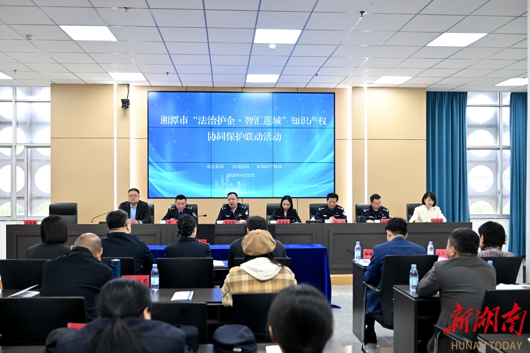 湖南日报·新湖南客户端4月22日讯(记者 蒋诗雨)第26个世界知识产权日即将到来,4月22日上午,湘潭市公安局联合市司法局、市知识产权局在湘潭市知识产权保护中心开展2026“法治护企·智汇莲城”知识产权协同保护联动活动。湘电集团有限公司、湖南桑尼森迪玩具制造有限公司等企业代表及相关部门100余人参加活动。