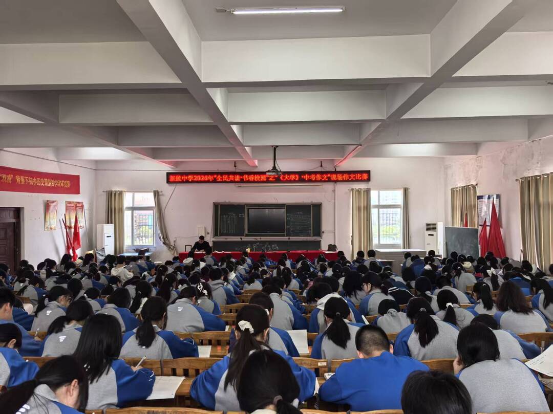 科教新报·新湖南客户端讯(通讯员 李玲 翟雨婷)为响应新邵县教育局“推进全民共读·共建书香学校”的号召,近日,新邵县新航中学举办2026年“全民共读·书香校园”现场作文比赛,将经典阅读与中考写作结合,助力学生素养提升。
