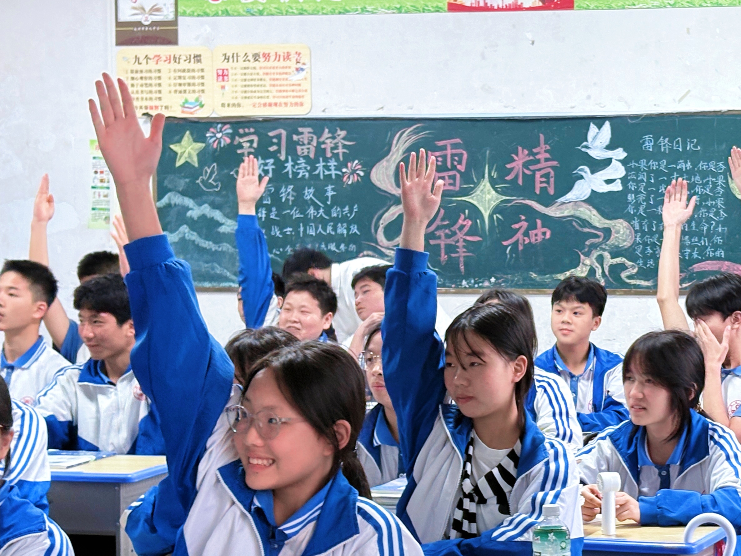 “想要真正理解长征,这本书能带你们走得更深、更远。”志愿者捧起《长征》一书,用丰富的图文资料,将散落的故事串联起完整的历史图景。而知识问答环节则将现场气氛推向高潮,关于湘江战役、遵义会议、长征精神的问题接连抛出,中学生们踊跃举手,对答如流。 “以前总觉得长征是遥远的历史,今天听了这么多具体的人和事,忽然觉得他们离我们很近。”初二学生罗欣洁的分享引起共鸣。该校法学2501班凌梓妍表示:“我们希望通过有温度的故事、有力量的诗歌、有深度的书籍,让长征精神可感可触。”