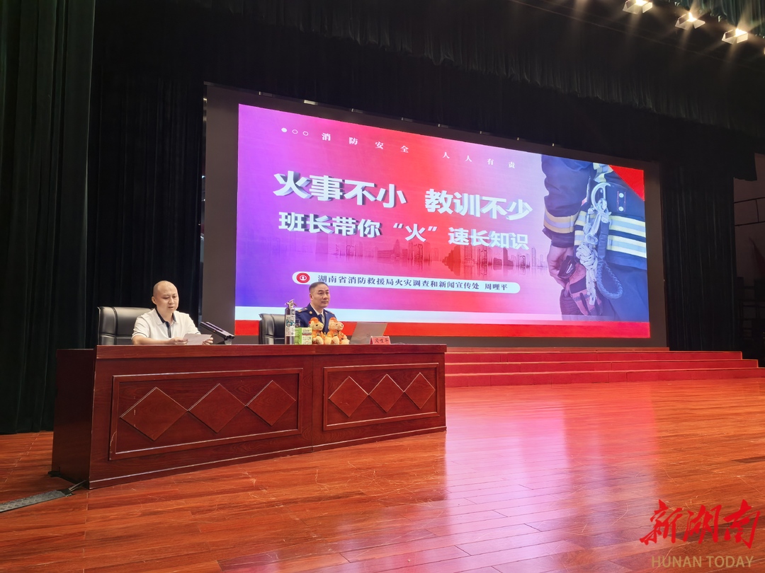 “国之大者”,安全为要。在会议活动中心大礼堂,省消防救援总队一级督导员周哩平深入解读湖南火灾形势、国内典型火灾案例、家庭消防安全常识等内容,让学员在“听、看、练”中掌握实用消防知识。