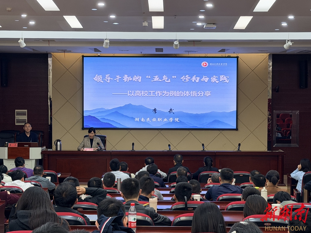 在德政楼沙龙现场,他结合担任湖南理工学院信息学院院长、人事处处长及湖南民族职业学院校长的三段工作经历,以具体案例和详实数据为支撑,生动讲述如何将“五气”融入实际工作。比如,在信息学院主要把推动学科专业建设作为重点,在人事处工作期间坚持以制度创新激发队伍活力,在校长岗位上积极推动学校形成新发展格局。
