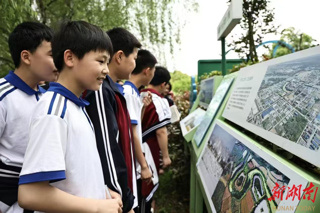 春日里的法治公园草木葱茏,湿地保护法治宣传设施掩映在绿水碧波之间,法院干警与路口中学师生一同步入白泥湖湿地保护法治公园、生态环境司法保护基地。