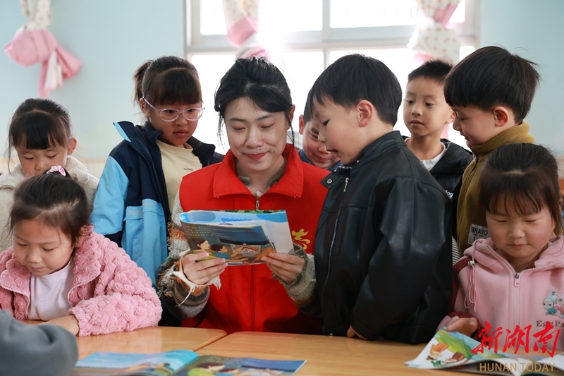 4月22日,常德市武陵区芙蓉街道项家铺社区志愿者带着精心挑选的绘本走进武陵区文博幼儿园,和孩子们开启了一场温馨的阅读之旅。世界读书日即将到来之际,各地举行形式多样的阅读活动,让人们徜徉书海、浸润书香。蔡文龙 摄(湖南图片库)