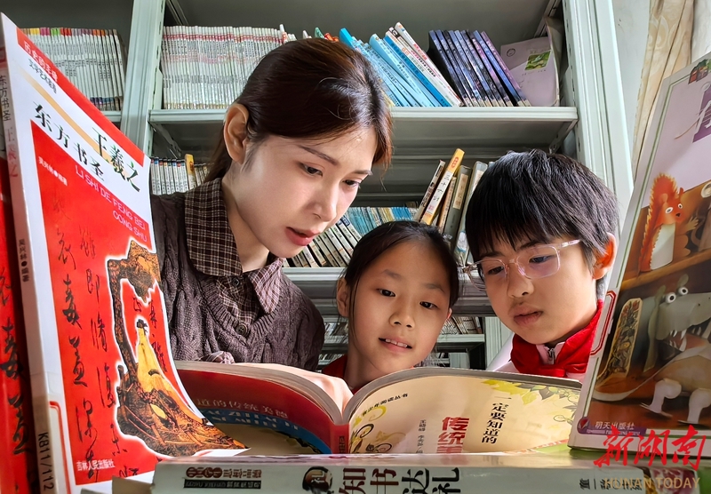 4月22日,嘉禾县塘村镇中心学校,师生在图书室阅读图书。世界读书日即将到来之际,各地举行形式多样的阅读活动,让人们徜徉书海、浸润书香。黄春涛 廖艳花 摄影报道(湖南图片库)