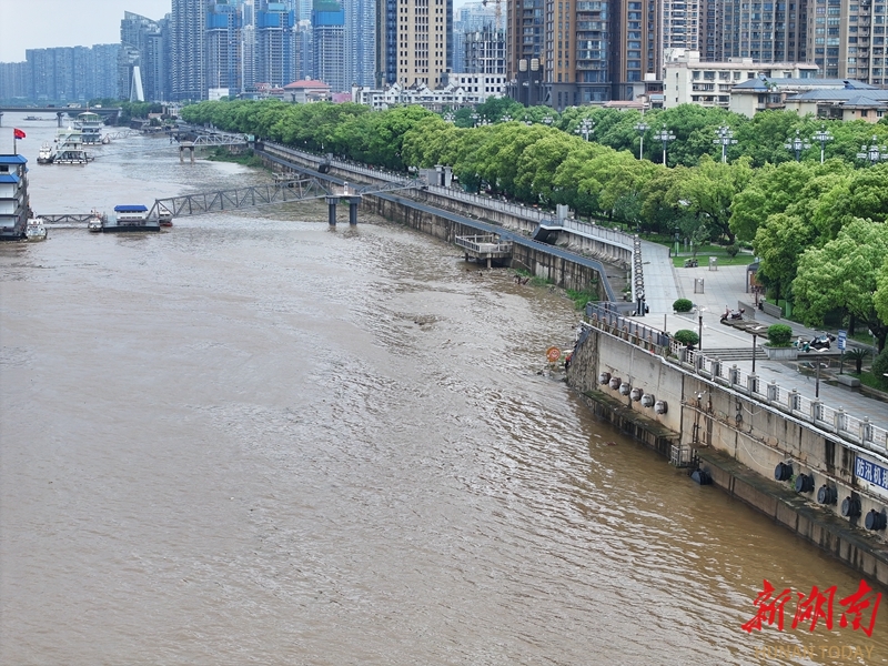 4月22日,湘江长沙风帆广场段,水位持续上涨。本轮降雨持续时间长、累计雨量大,湘江水位呈快速上涨态势。长沙市防办已启动防汛应急响应,要求沿江各区县(市)、相关部门密切关注水情变化,加强巡堤查险,重点做好湘江干支流堤防、穿堤建筑物、涵闸等关键部位的监测值守,确保防洪工程安全。湘江长沙站预计于4月23日出现洪峰过程。湖南日报全媒体记者 傅聪 摄