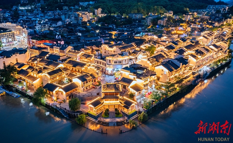 4月22日晚,华灯初上的怀化市洪江古商城流光溢彩,勾勒出千年商埠的独特韵味。洪江古商城现存明清至民国时期古建筑380余栋,形成“七冲八巷九条街”格局,曾以桐油、木材商贸闻名,享有“小南京”“中华商业故宫”之称。 湖南日报全媒体记者 李健 摄