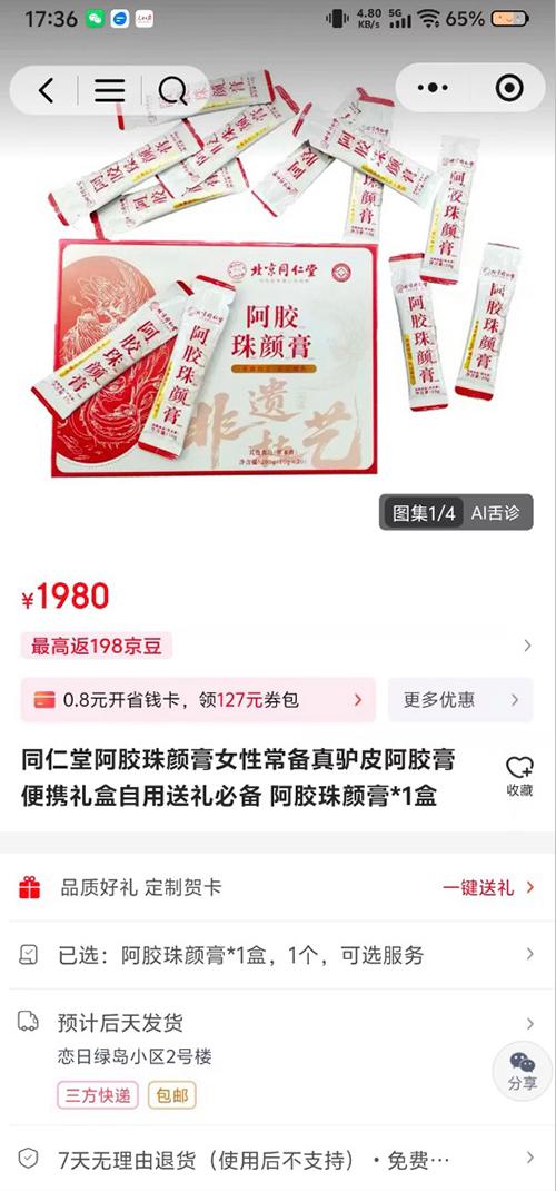 “他们说这是大企业知名产品,吃了对女性身体特别好,网上都有店铺。当时就打开京东APP给我们看,一个名叫‘孜善堂医疗保健旗舰店’的店铺,上面售卖的同款珠颜膏标价是单盒售价1980元。”现场比价后,赞助商称可以给在座阿姨们优惠价,6盒才4800元。最终,10个人里只有一个人没买,买得最多的人当场花了1万多元。