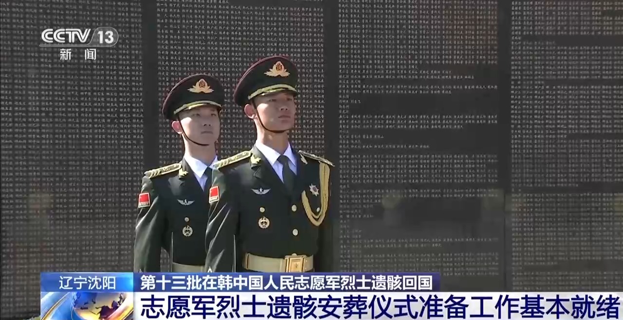 76年前,中国人民志愿军为了捍卫世界和平,跨过鸭绿江挺进抗美援朝战场,如今祖国张开她温暖的双臂,迎接远行而归的英雄回家。今天上午10时,第十三批在韩中国人民志愿军烈士遗骸安葬仪式将在沈阳抗美援朝烈士陵园举行。