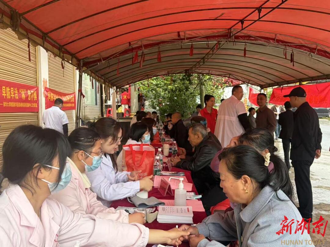 湖南日报·新湖南客户端4月23日讯(通讯员 李杰平 刘昭维 胡璇)4月21日,南华大学附属南华医院联合衡阳县西渡镇中心卫生院,在西渡镇举行第32届全国肿瘤防治宣传周主题活动。南华医院组建多学科专家团队,围绕“早防早筛早治,同心携手抗癌”主题,开展大型基层义诊与科普巡讲,将优质医疗资源和权威健康知识送到群众家门口。