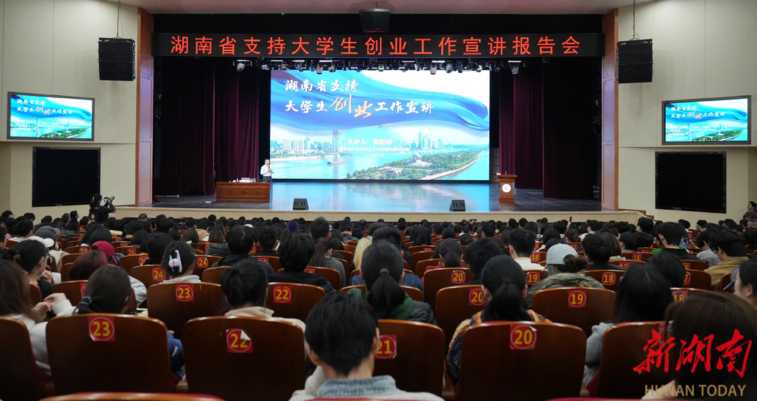 湖南日报·新湖南客户端4月23日讯(通讯员 易姣 杨忠远 记者 李杰)4月22日,湖南省支持大学生创业工作第三场宣讲报告会在湖南文理学院艺术中心举行。
