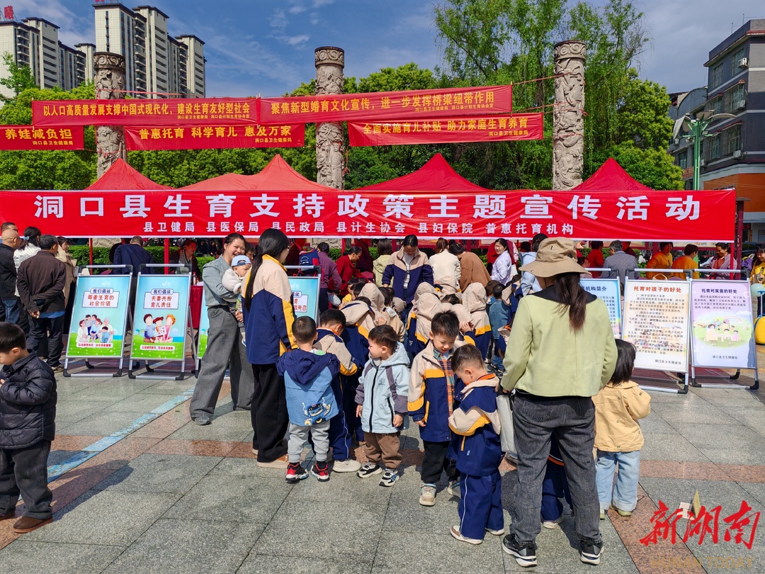 大众卫生报·新湖南客户端4月23日讯(通讯员 宁小华 龙浩翔 谭柳)为深入贯彻落实国家、省、市优化生育政策,促进人口长期均衡发展,4月23日上午,洞口县在雪峰广场举办生育支持政策主题宣传活动,为育龄群众、婴幼儿家庭提供一站式政策咨询与健康服务。