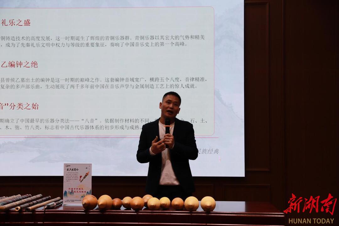 学校特邀邵阳市管弦学会副会长姜文欢开展民族乐器专题分享与现场展演。姜文欢以民族音乐千年传承为脉络,讲解葫芦丝、竹笛、埙等乐器的历史渊源与艺术特色,并现场演奏经典曲目。悠扬丝竹,清雅琴韵,让与会教师在视听交融中沉浸式感受中华优秀传统音乐的魅力,为后续推动“民乐进课堂”奠定扎实基础。