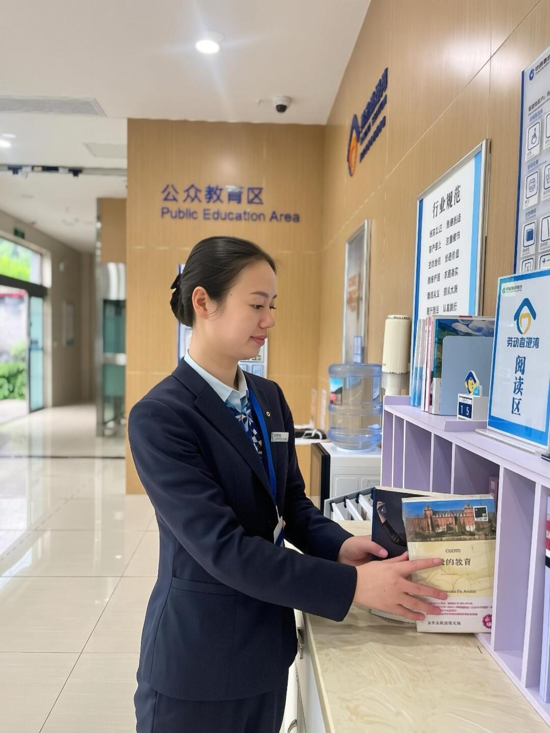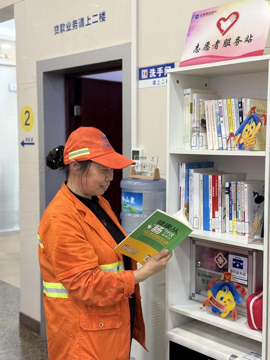 湘西州古丈支行的图书角同样经历了从无到有、从简到暖的成长。每天清晨,员工提前到岗整理书架、擦拭桌椅,把《爱的教育》《中老年保健1000问》等书籍分门别类摆放整齐。一位环卫大姐总在午休时来看书,接过工作人员递上的热水,她笑着说:“建行的书角,让我们这些户外工作者也有了歇脚读书的地方,心里暖烘烘的。”