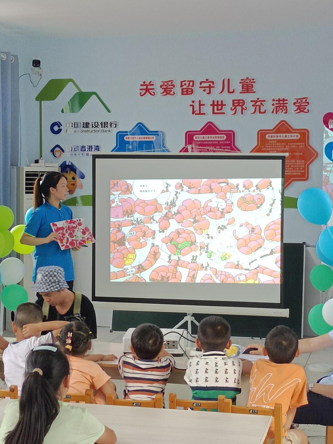 活动当天,工作人员带着做成PPT的绘本来到村里。看着孩子们纯真又期盼的眼神,他们化身阅读陪伴者,一字一句耐心讲解,用一页页精彩的画面带孩子们走进奇妙有趣的阅读世界。孩子们听得入神、满眼欢喜。这份跨越空间的书香传递,不仅带去了知识与乐趣,更送去了实实在在的陪伴与关爱,让劳动者港湾的初心在乡村土地上绽放出温暖的光芒。