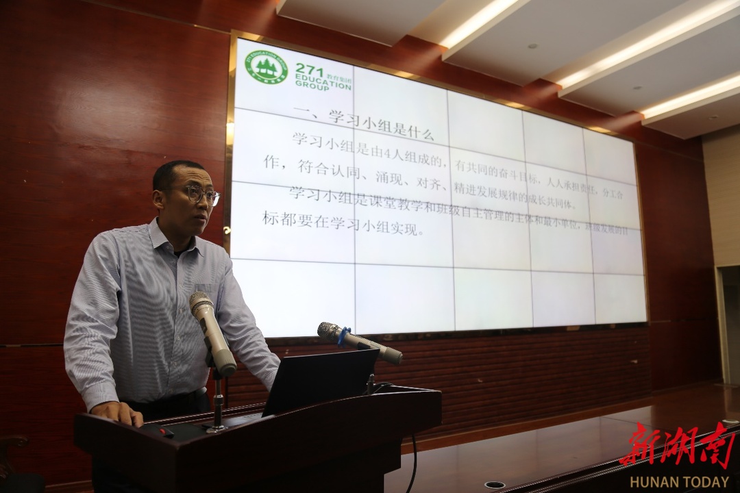 第二场专题报告《小组长学习领导力提升》,由山东二七一教育集团学校潍坊实验中学地理学科主任李宏亮主讲,聚焦学习小组建设核心要点,详细讲解小组长选拔、培养、培训方法,以及如何通过有效管理激发学生主动性、培养合作与自我管理能力,为益阳万源人文高级中学优化小组建设、提升学生自主学习能力提供有力支撑。两场报告内容充实、针对性强,为后续教学教研工作指明方向。