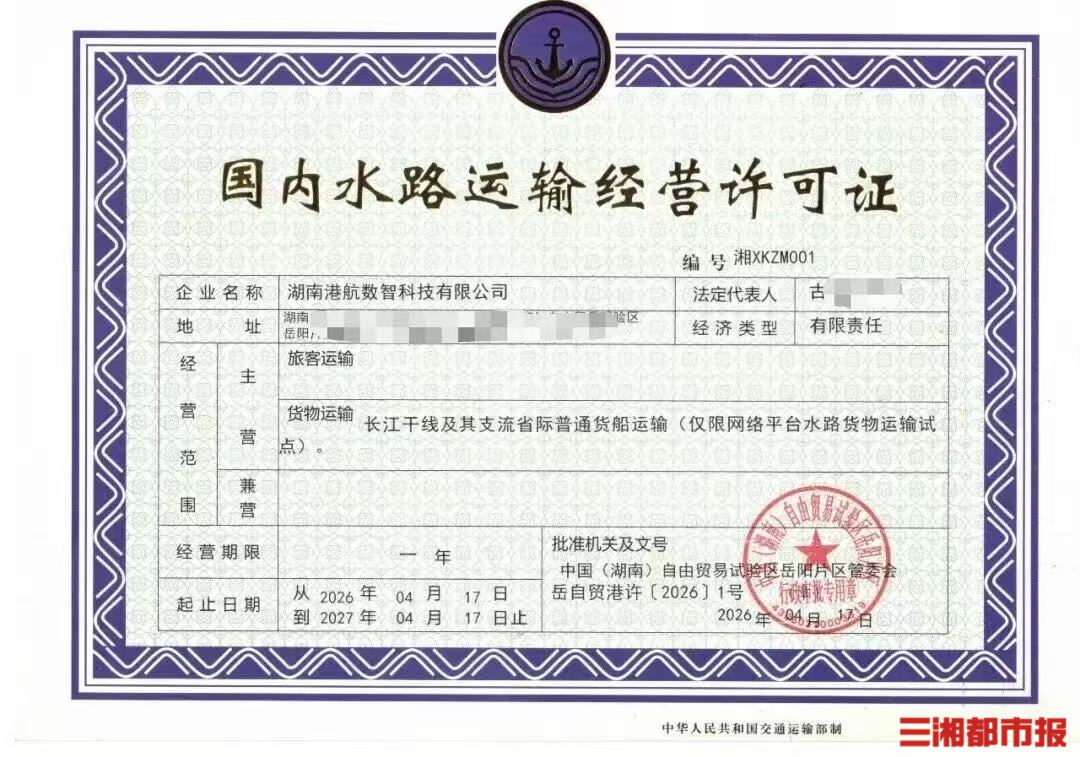 据悉,该类许可证此前多在江苏等少数水运发达省份试点。湖南作为内陆省份能够率先突破,得益于岳阳在融入“一带一路”、衔接长江经济带中的特殊地位——城陵矶港区是湖南唯一通江达海的“桥头堡”。在省、市交通运输部门及岳阳自贸片区的协同推动下,依托自贸片区制度创新优势,以“一事一议”方式促成此次许可落地,成为湖南抢抓数字物流新赛道、提升长江经济带节点功能的重要举措。
