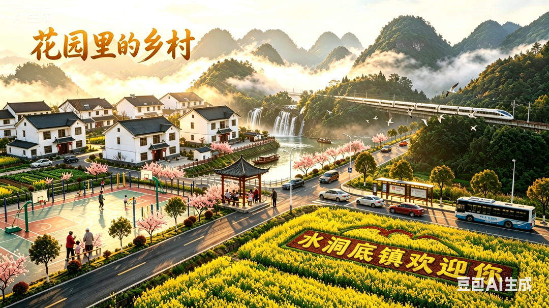 湘中古津水洞底,不负春光不负卿。这里水清潭幽,群山叠翠,烟雨朦胧;孙水两岸的油菜花海,铺就一望无际的金色画卷。远离喧嚣,踏春赏景,打卡田园风光,体验淳朴乡风,水洞底镇,藏着最治愈的春日浪漫 。(通讯员 梁飘飞 AI创作)