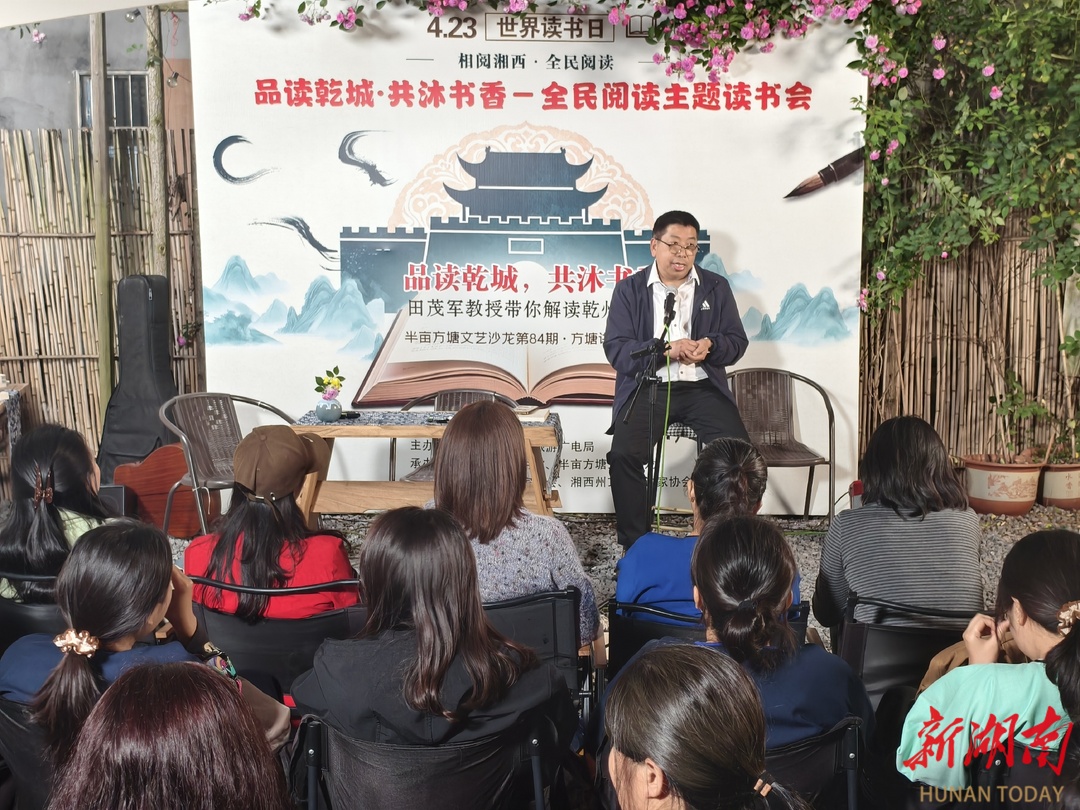 湖南日报·新湖南客户端4月23日讯(通讯员 刘希雅 全媒体记者 杨元崇)今晚,世界读书日的春风与书香,共同浸润着湘西乾州古城的夜色。在半亩方塘文艺沙龙,一场“品读乾城·共沐书香”全民阅读主题读书会温情启幕。背景中古韵城楼与山水画卷相映,吉首大学田茂军教授以温润之声,引领听众穿越时空长廊,解读古城风华。台下读者或凝神静听,或轻记感悟,竹篱花影间,书香与春意交融,阅读的种子在这方庭院里,悄然生根。