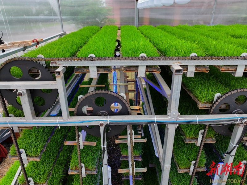 4月22日,湖南农业大学耘园立体育秧与设施综合利用大棚内,翠绿的秧苗长势旺盛。湖南日报全媒体记者 赵持 通讯员 青晓彤 摄影报道